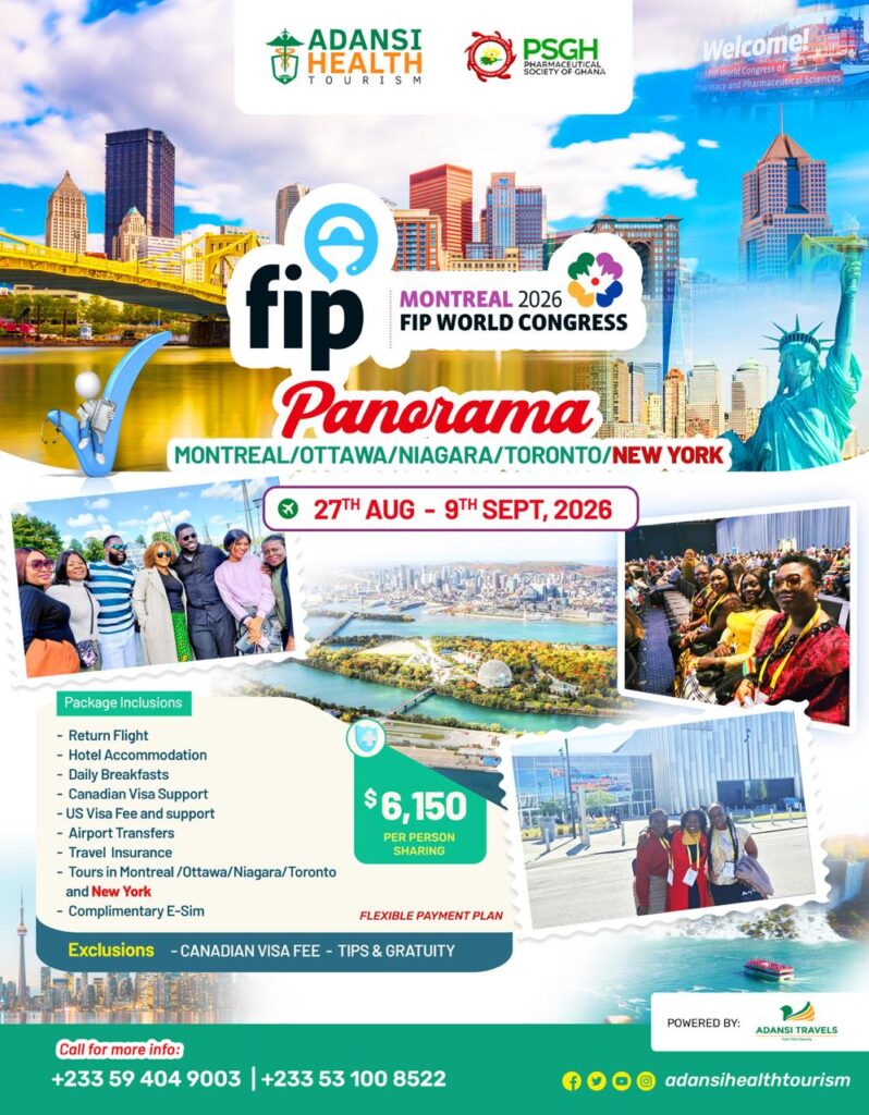 Join the Pharmaceutical Society of Ghana (PSGH) and Adansi Health Tourism for an exclusive professional journey across Canada and New York.