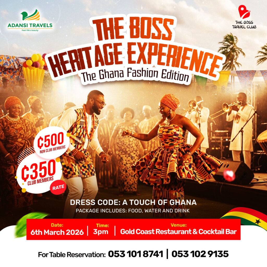 Join us for The Boss Heritage Experience – The Ghana Fashion Edition, an electrifying evening of culture, cuisine, music, and fashion!