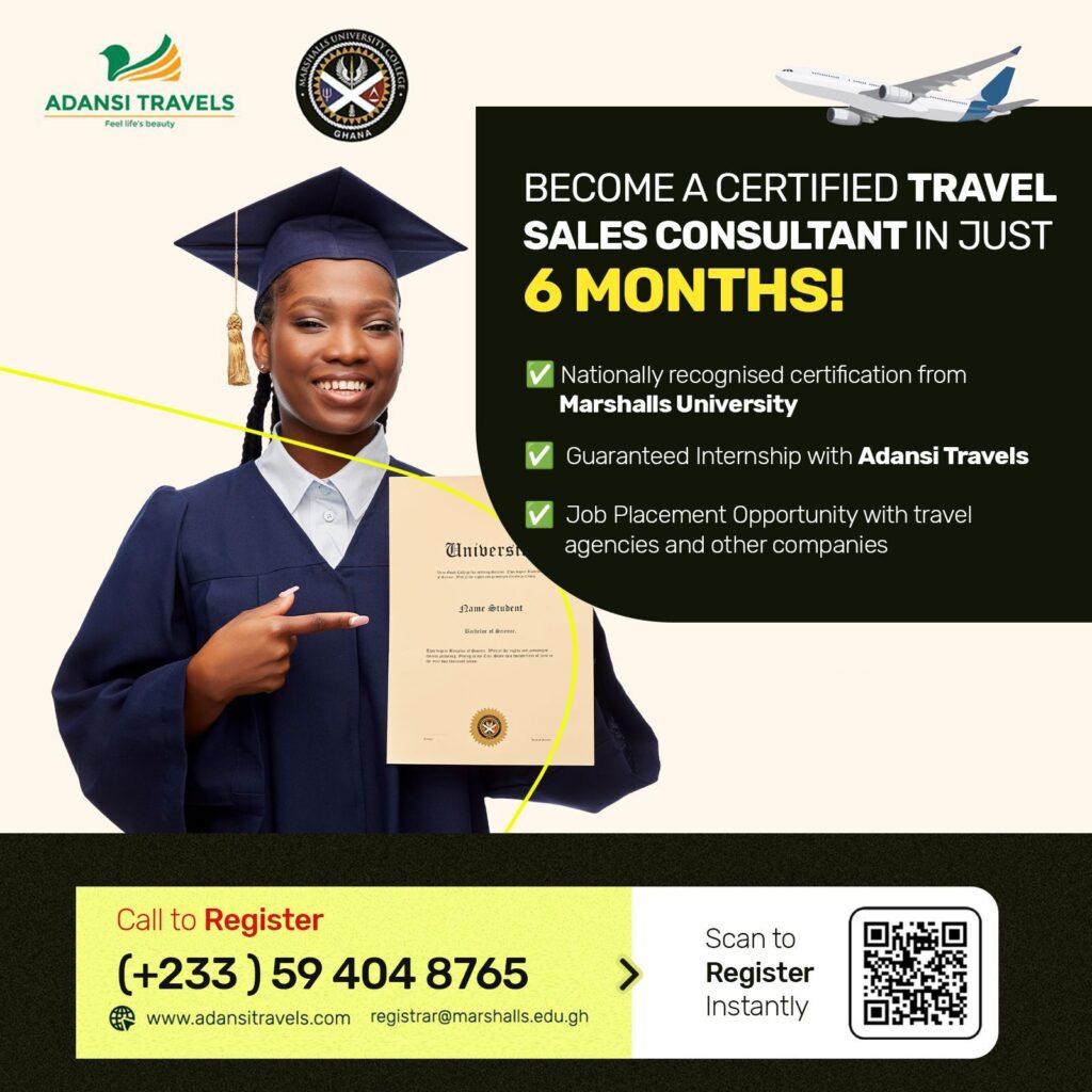 Unlock exciting career opportunities in the travel industry with a nationally recognized certification from Marshalls University and a guaranteed internship with Adansi Travels.